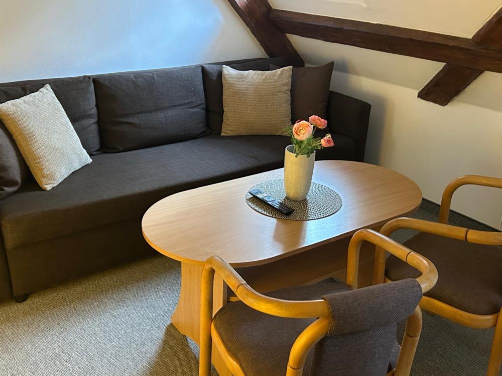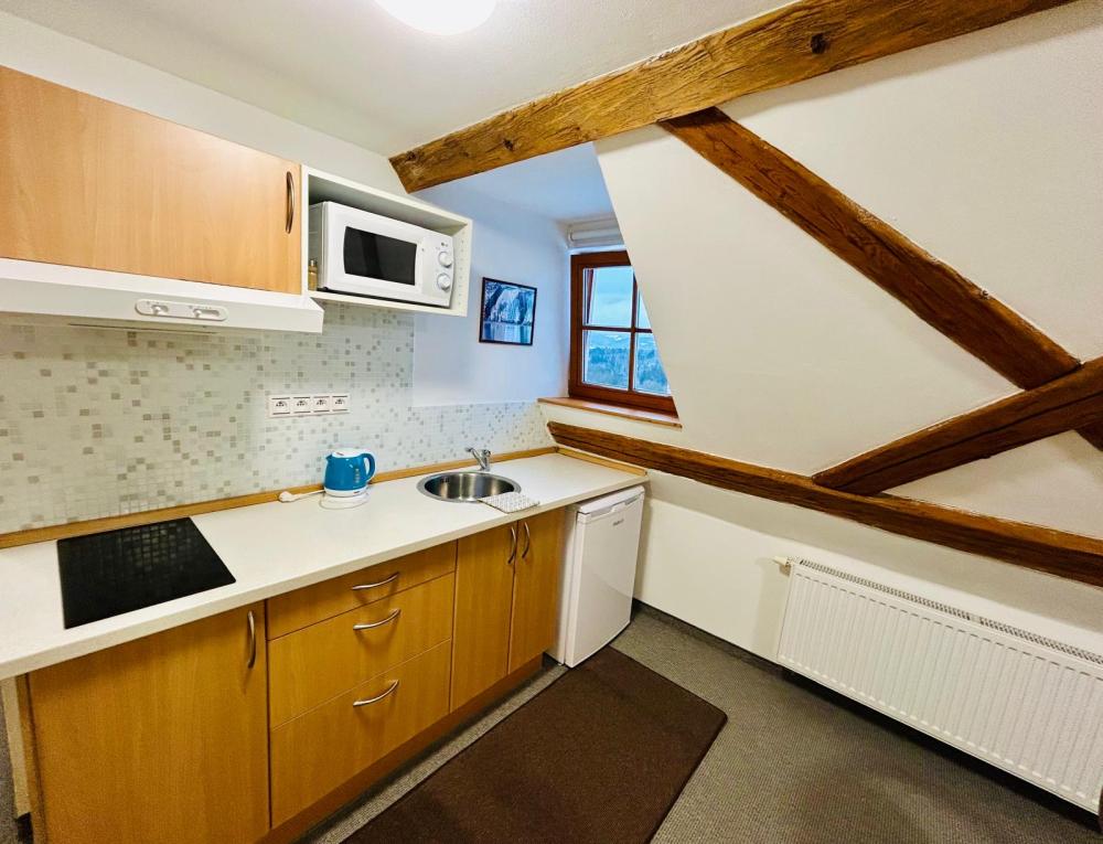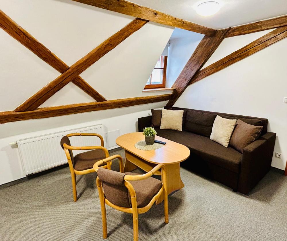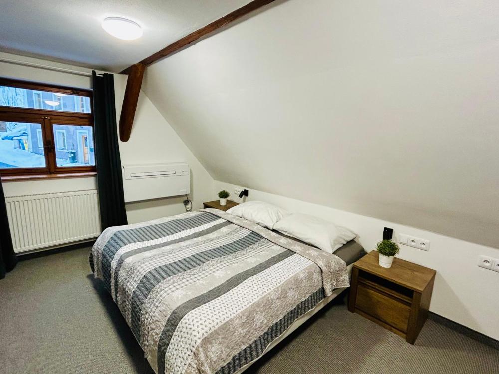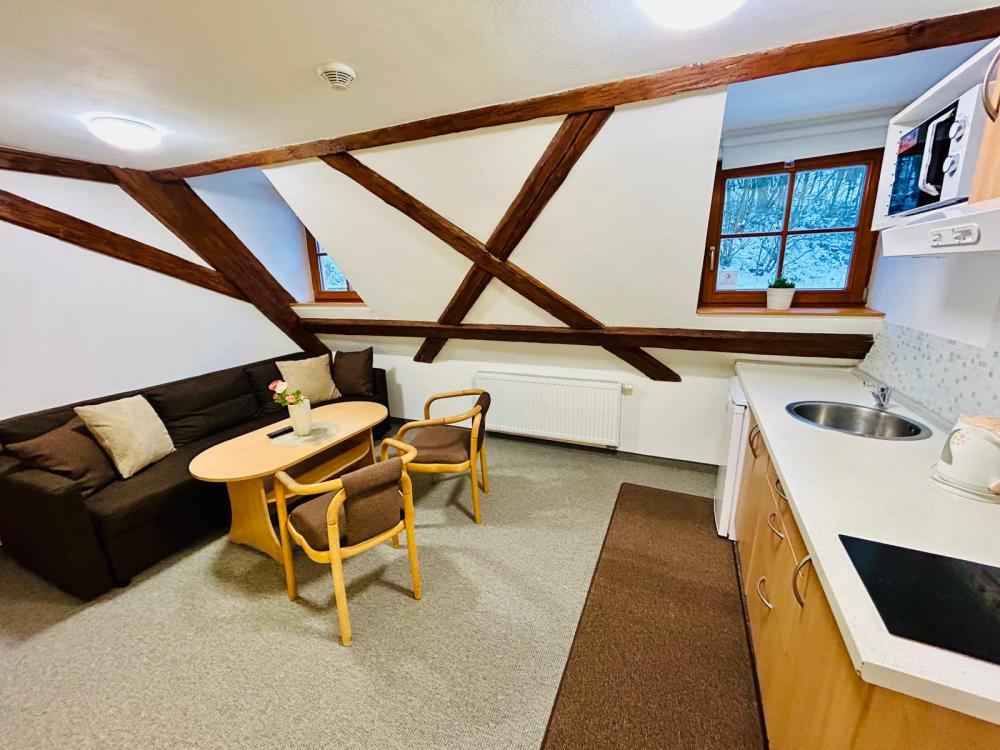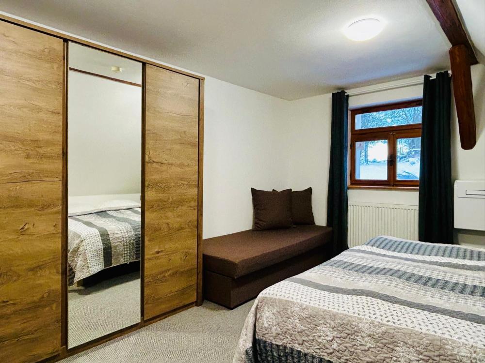Kapacita 2+2 osoby, předsíňka, ložnice dvoulůžko 160 cm a dvě lůžka 90 cm, obývací pokoj s posezením, vybavená kuchyňka, vlastní koupelna, ručníky a toaletní potřeby, fén, plochá TV. Ke každému apartmánu náleží parkovací místo v uzavřeném areálu (pro přímé rezervace parkování zdarma).