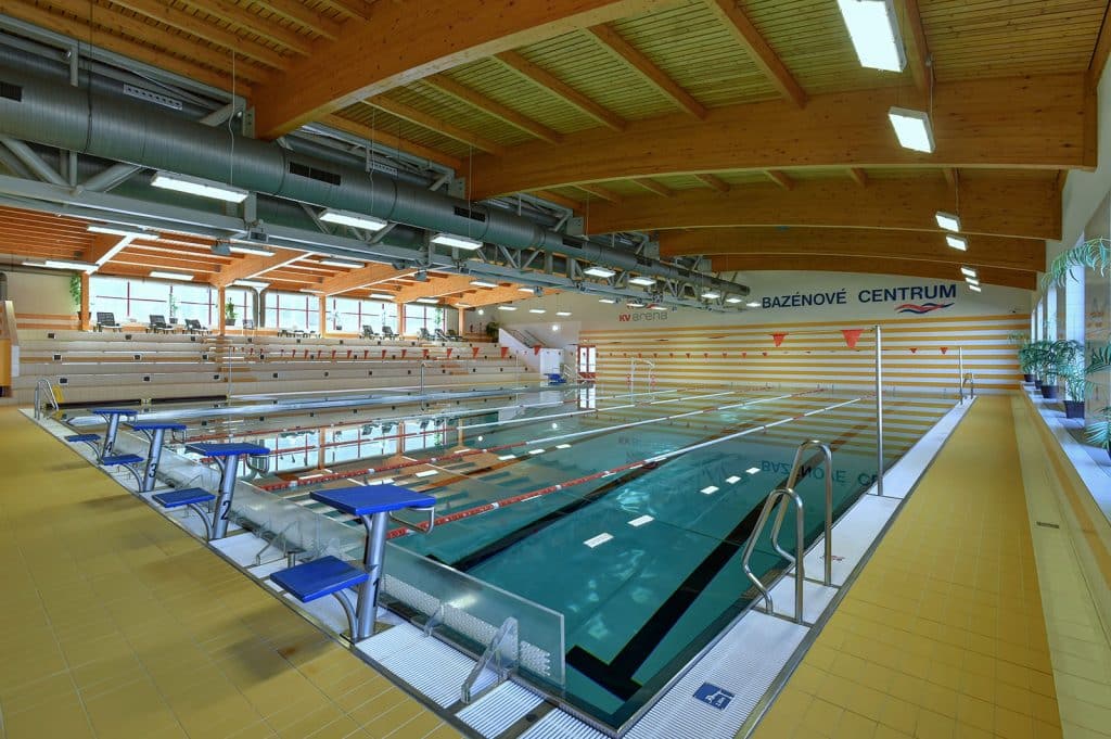Moderní plavecký areál s relaxačními i sportovními bazény, tobogánem a wellness zónou, ideální pro zábavu i odpočinek.